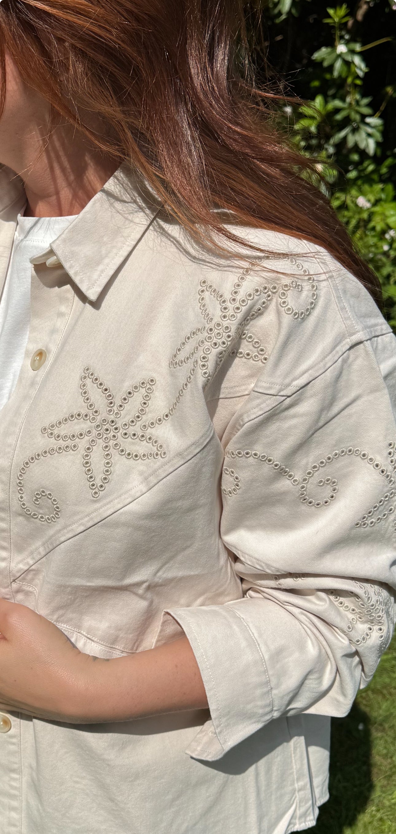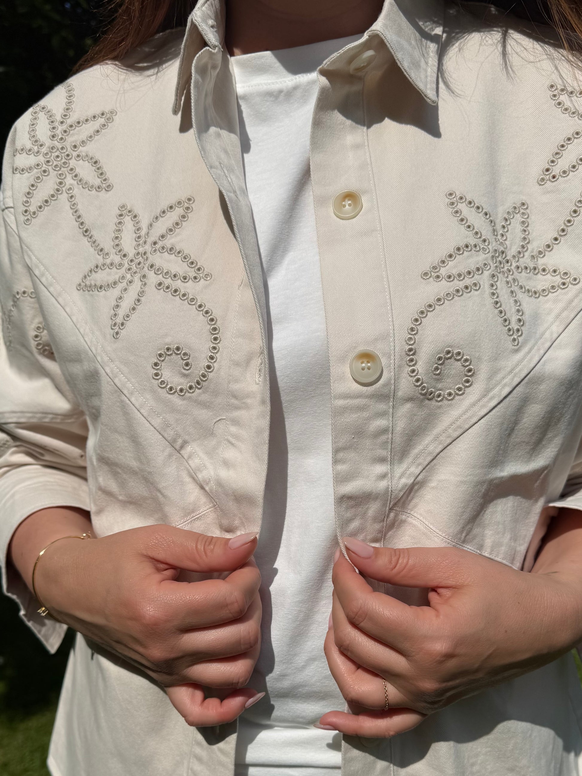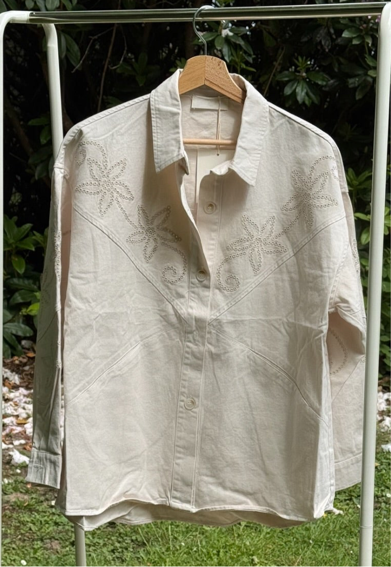 Veste beige motifs fleurs