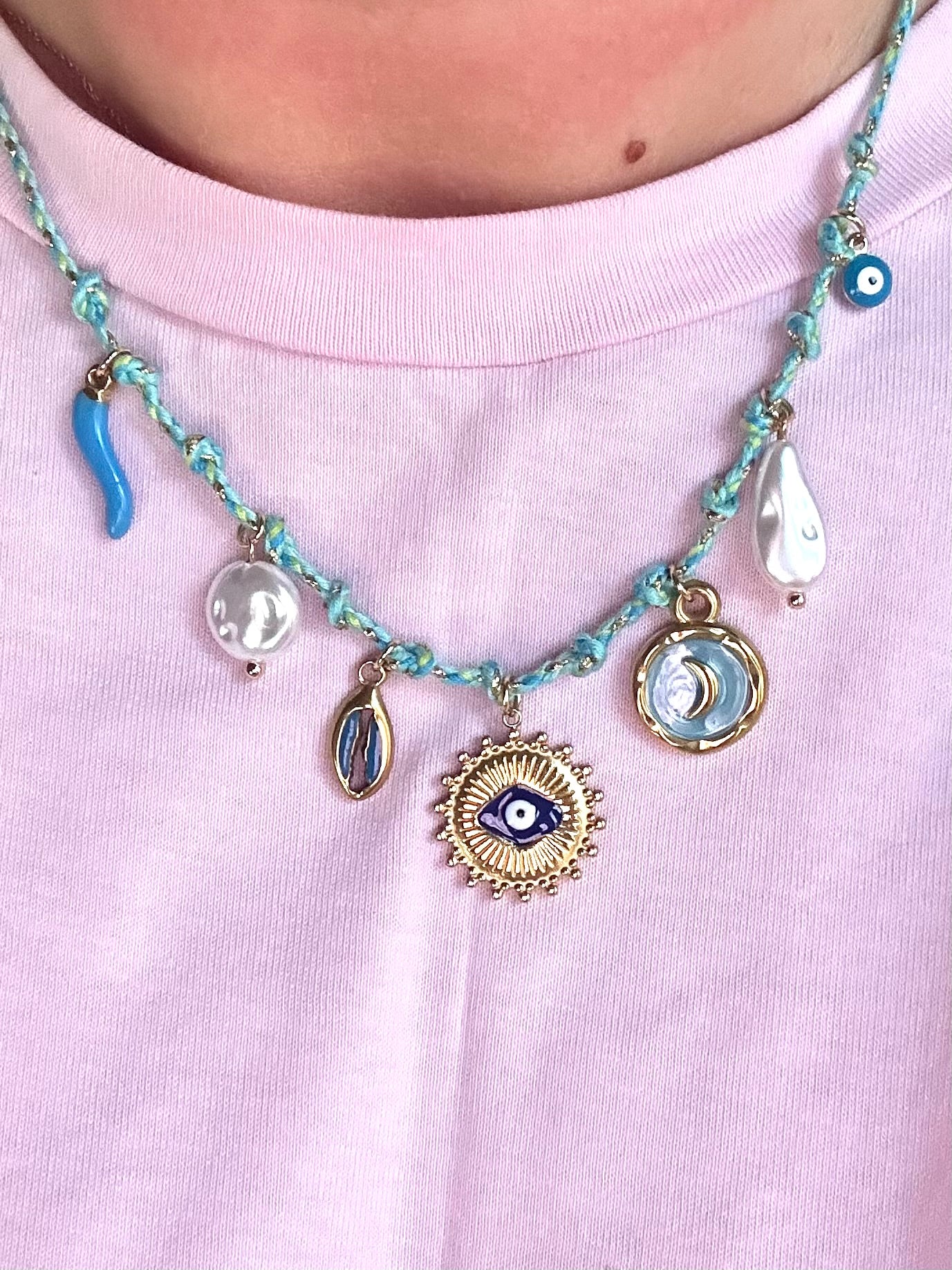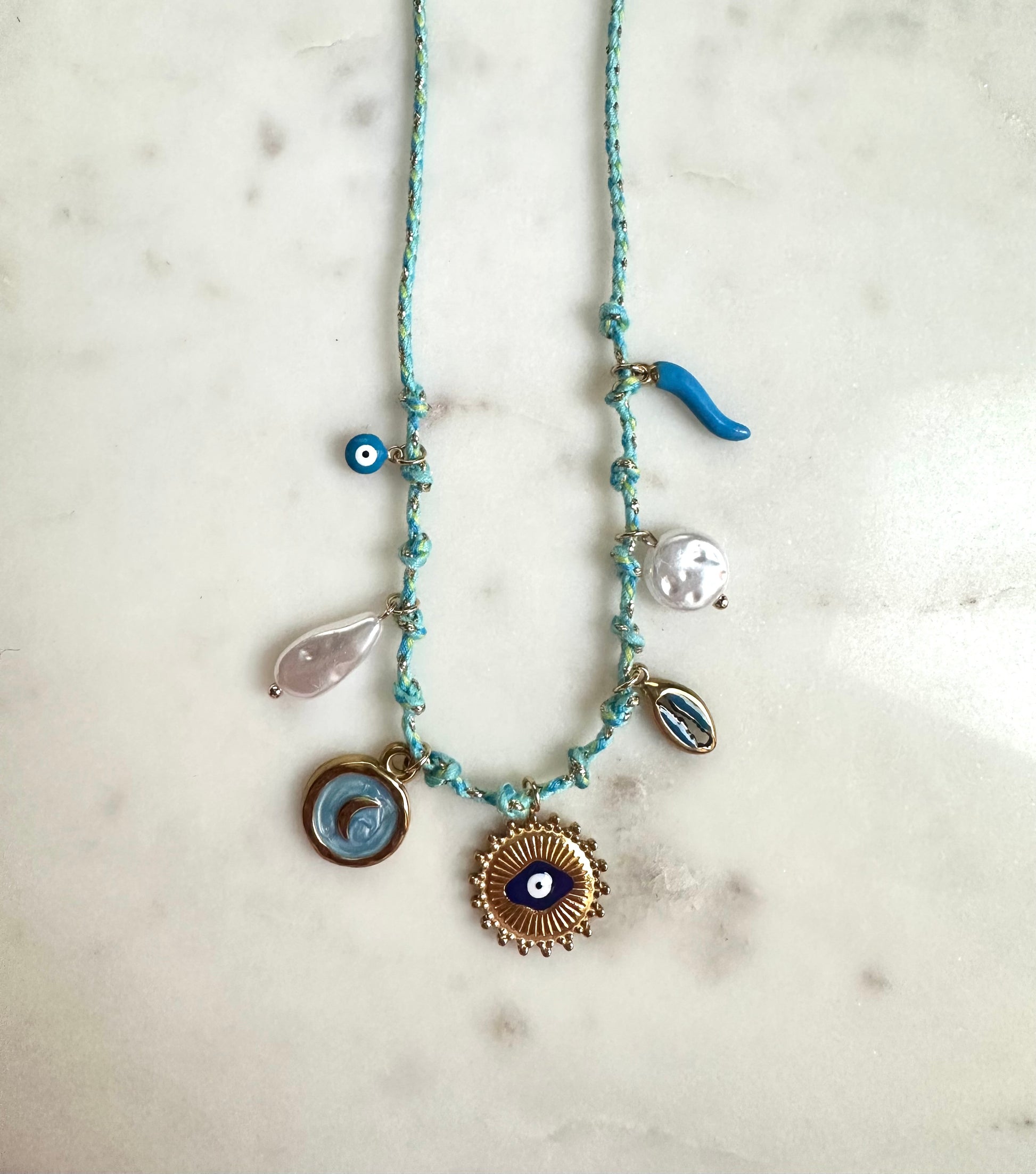 Collier cordon avec pendentifs.