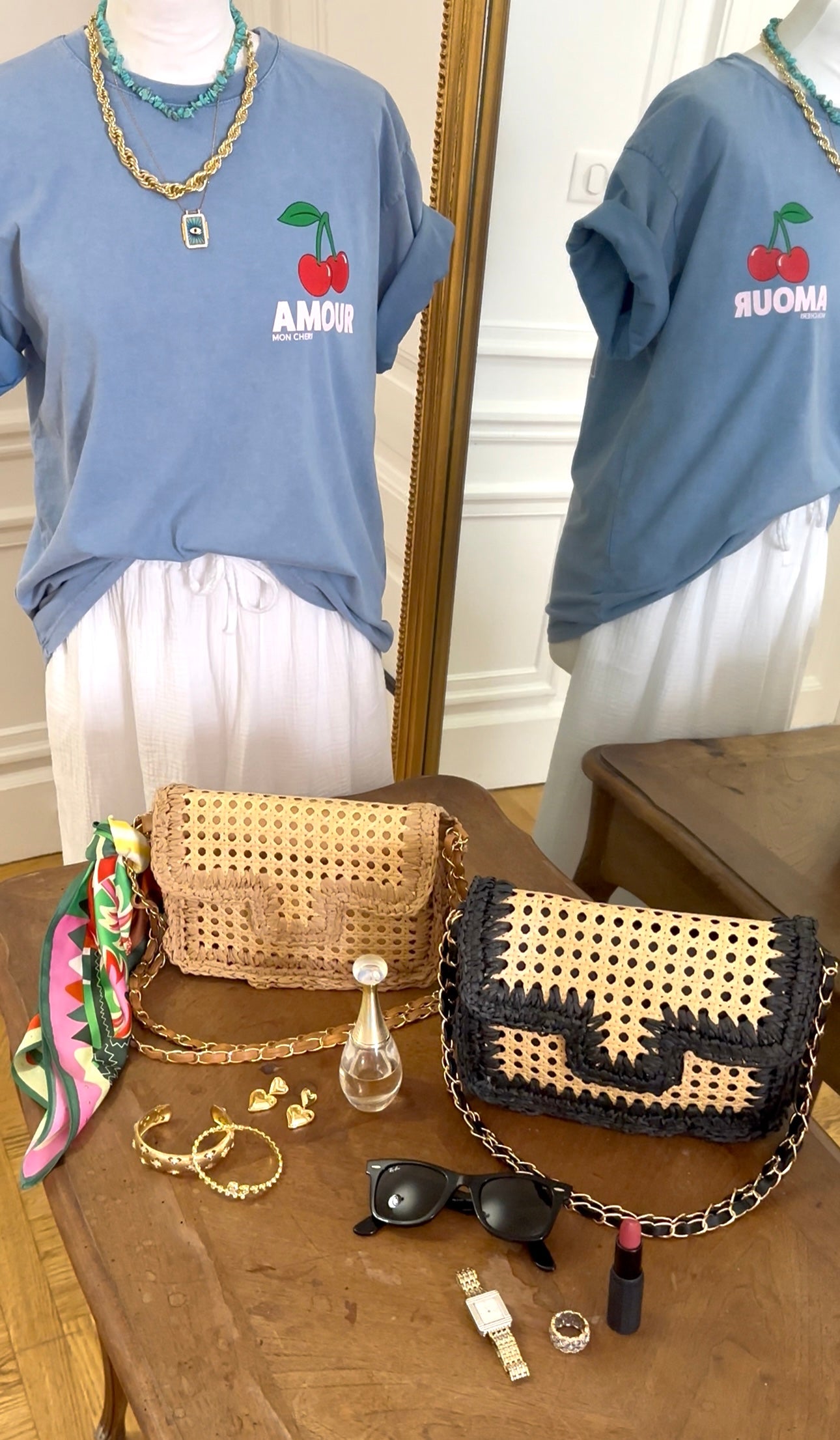 • chaîne double ( porté épaule ) chaîne simple ( porté cross body )
